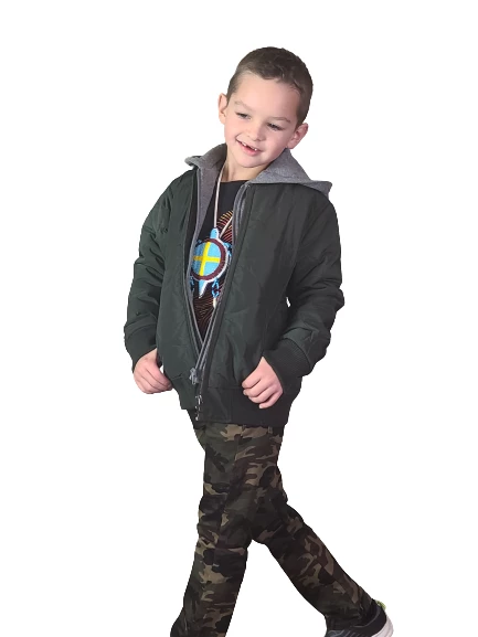 Recess never looked cooler. Our BX Bomber is the IT jacket for fall. Fully lined hooded sweatshirt is layered with a quilted bomber jacket.