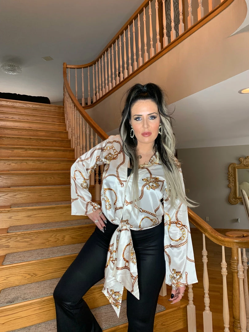 You’ll be weekend ready with our Gayle Top! She features a v-neck, long bell sleeves, tie front and a hook and eye closure in front!