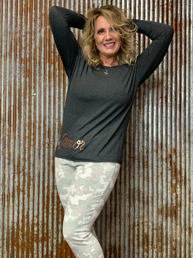 Dear John Watercress Camo Skinny, High Rise, Ankle, Fray Hem