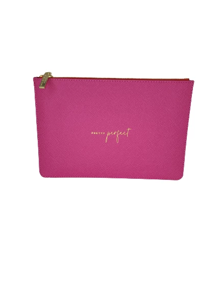 - Whether it’s for your Wellness essentials or anything else you’d like to keep safely stashed away in style, our Perfect Pouch is the ultimate treat! This hot pink design features a top zip fastening with gold-tone hardware and the sweet golden sentiment ‘Pretty Perfect’ embossed to the front.
