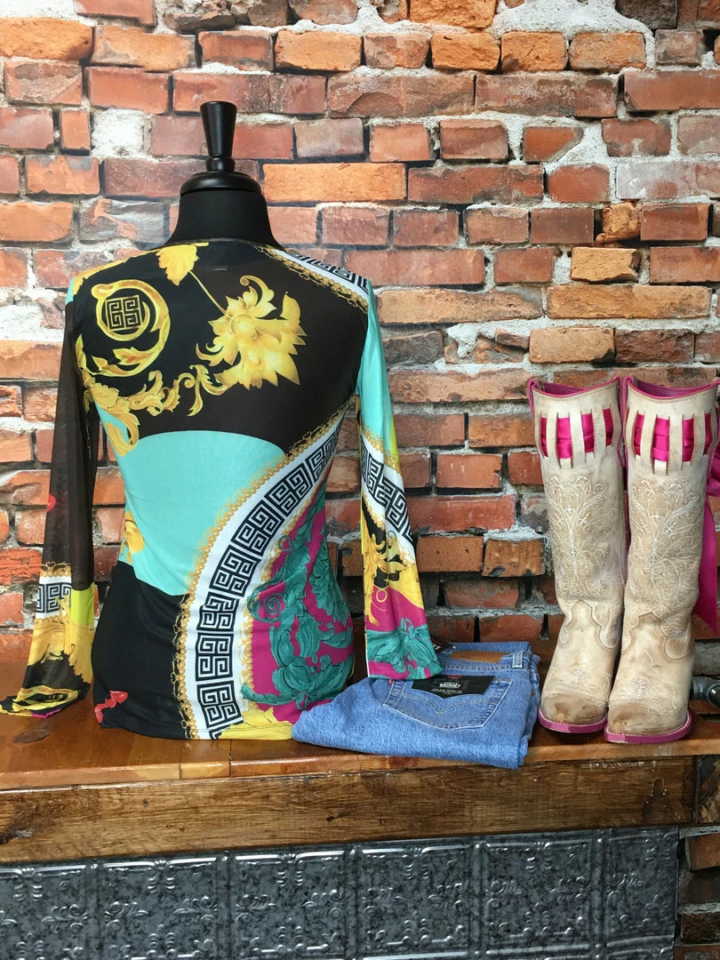 Show your style in this beautiful, cool, mesh top that is full of color and design.