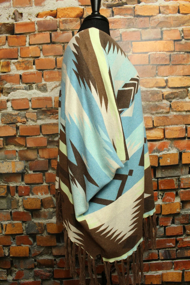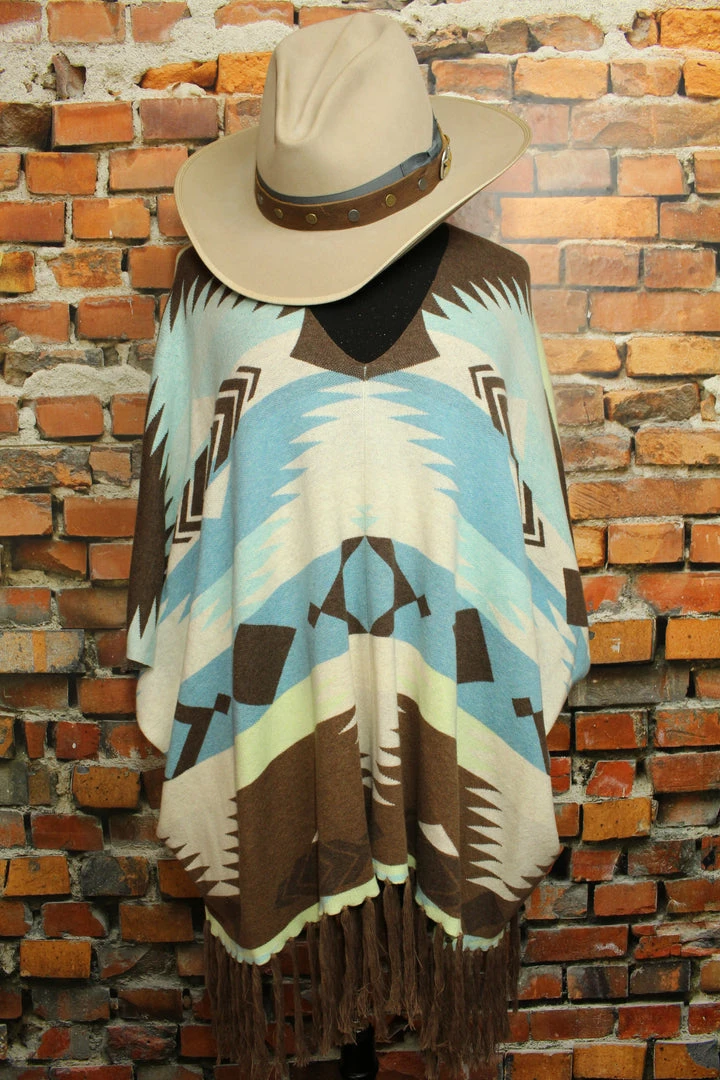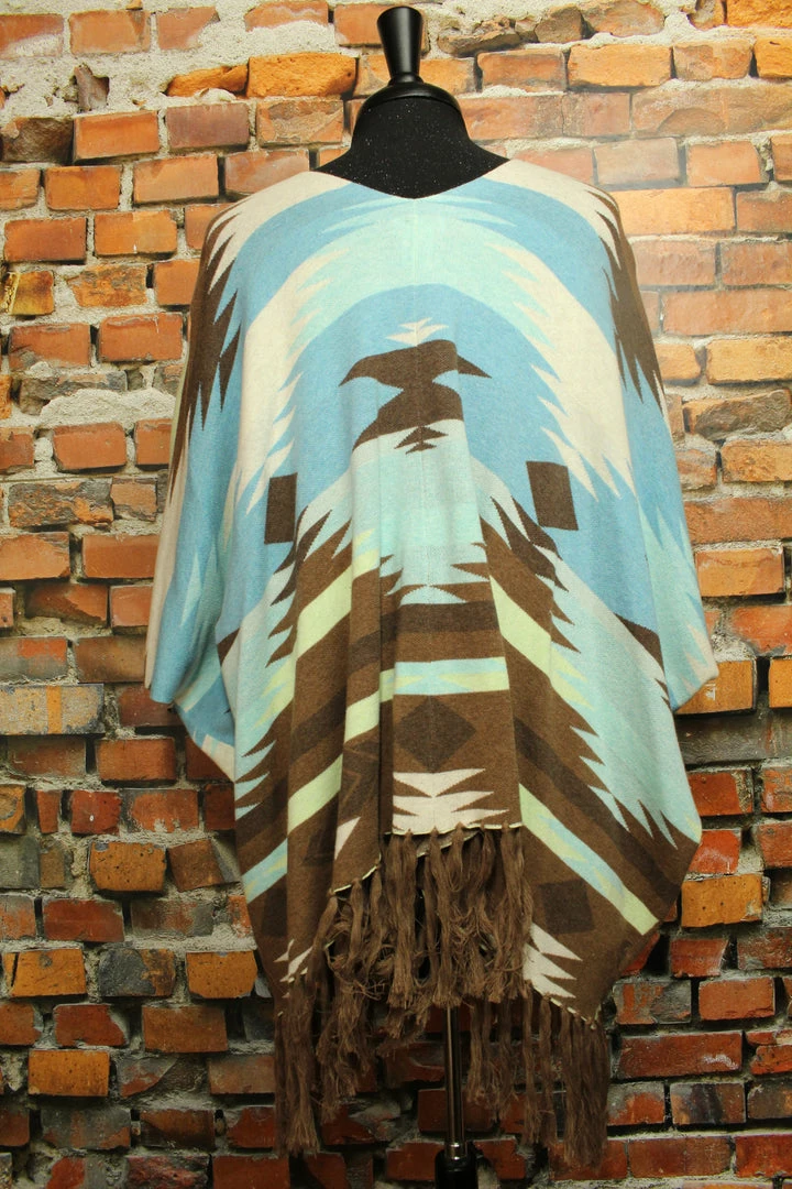 Contrasting colors of the natural elements of earth and water give this poncho a relaxing effect.