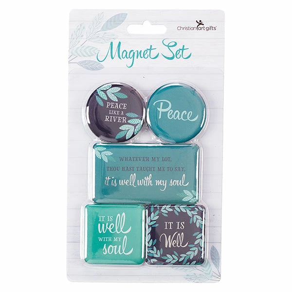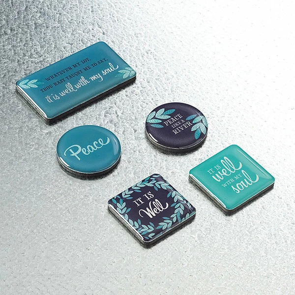 Gift magnet set of five pieces, ranging from 1.25″ to 2.25″.